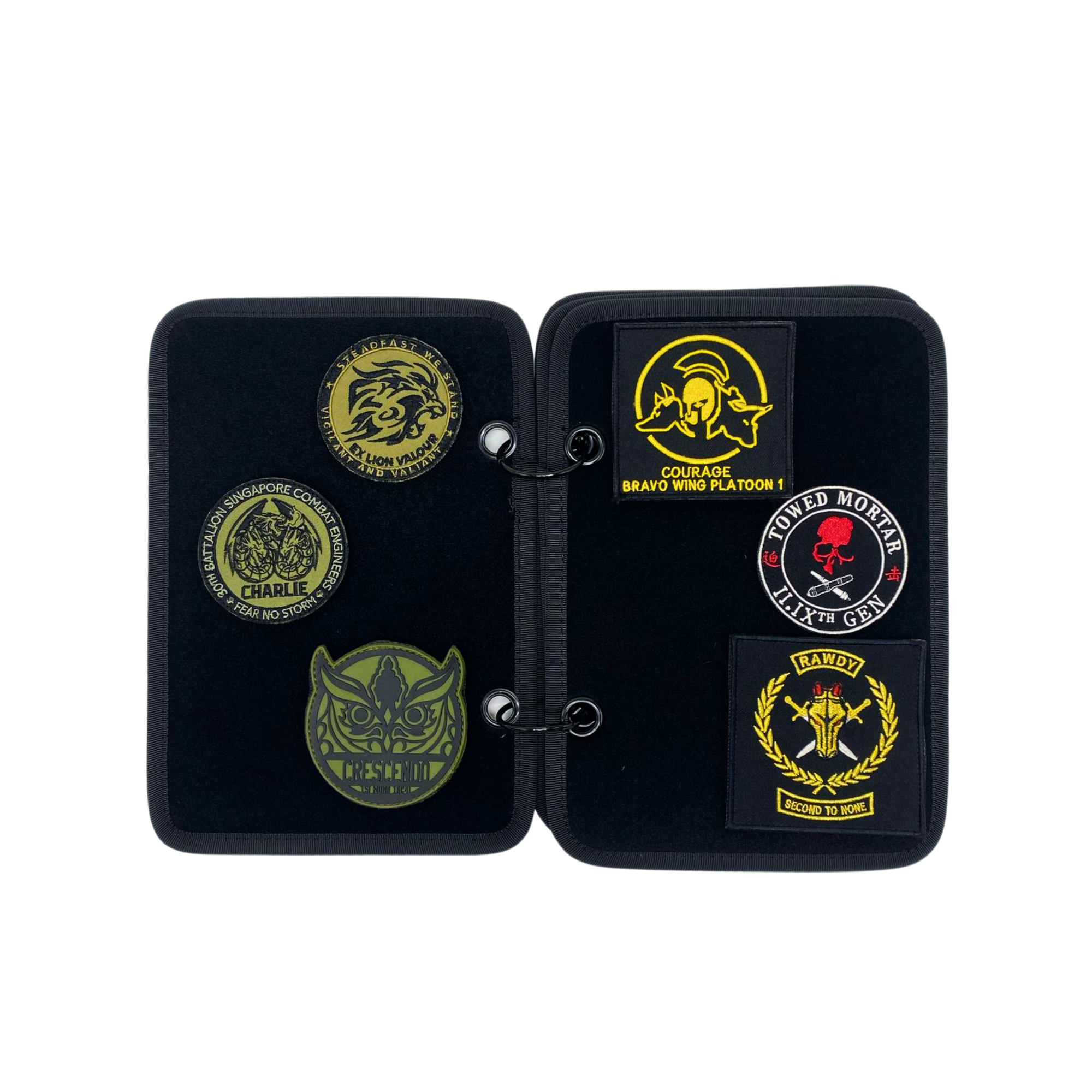Keep your morale and tactical patches organized or on display with this booklet-style storage folder!